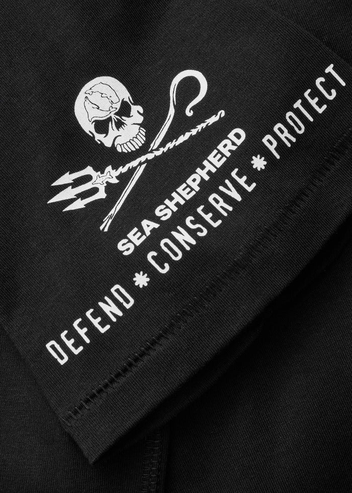 Direkt zuschlagen! Mit diesem T-Shirt kehrt ein legendäres Design in den Shop zurück. Die Rückseite des Shirts erinnert an unsere bewegte Vergangenheit und fasst einige markante Aktionen zusammen. Vom ersten Moment an stellten wir klar, dass Sea Shepherd sich nicht als Protestorganisation versteht, sondern als eine Organisation der Direkten Aktion, die Wilderei aktiv verhindert, statt sie „nur“ zu kritisieren.