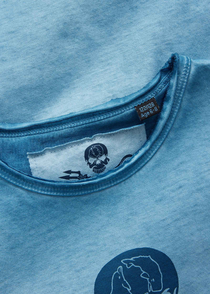 Piratenstark für unsere jüngsten Supporter. Das T-Shirt hat einen großen Jolly-Roger-Aufdruck auf der Vorderseite und ist aus hochwertiger Bio-Baumwolle gefertigt. Mit etwas Fantasie erinnern die zarten Blautöne an die Farben der Antarktis.