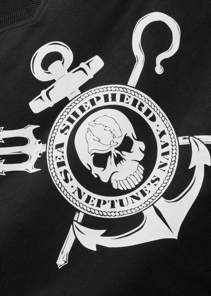 Das Design steht für unsere Flotte. Mit dem robusten und massiven Anker zeigt es klar, wofür Sea Shepherd steht. Das Logo wurde von Josh Giacomo entworfen. Josh ist seit Jahren Crewmitglied und hat u.a. an mehreren Anti-Walfang-Kampagnen teilgenommen.
