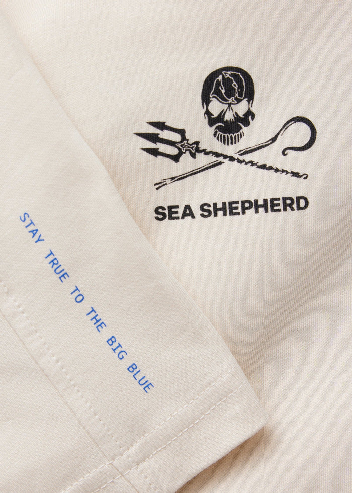- Rückseite: schwarzer Schriftzug FOR THE OCEAN und blauer Schriftzug SEA SHEPHERD