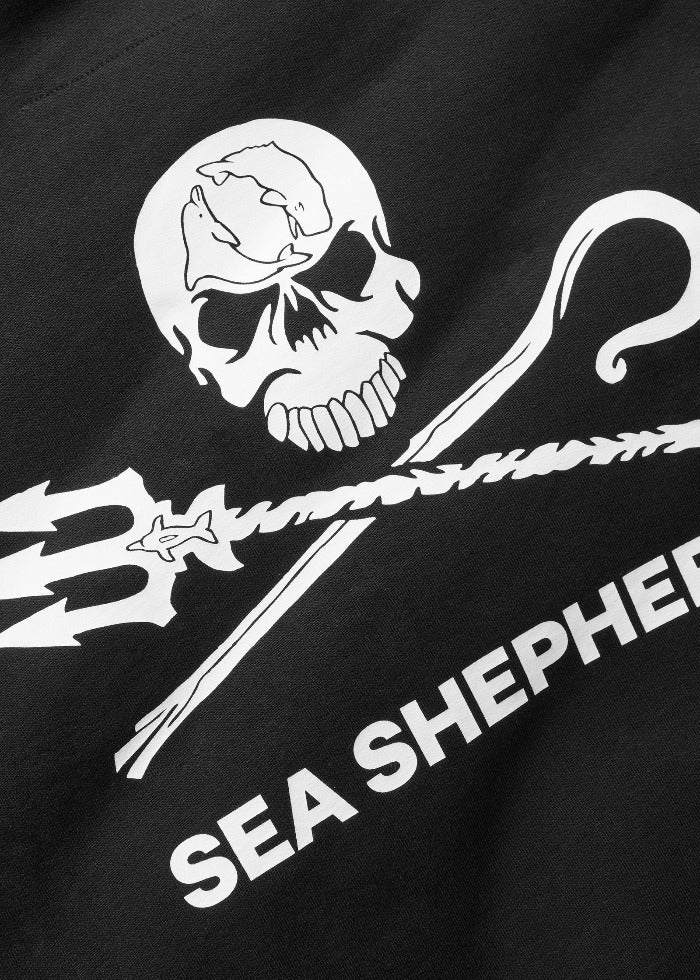 Das Jolly-Roger-Logo zeigt unsere eigene kreative Version der Piratenflagge. Es wurde von dem Künstler Geert Vons entworfen und zeigt, wofür wir stehen. Der gekreuzte Hirtenstab und Neptuns Dreizack sind das Symbol für unsere Wache über die Lebewesen in den Ozeanen und unsere Entschlossenheit für sie zu kämpfen, damit sie frei im Meer leben können. Der Totenkopf repräsentiert den Tod, den die Menschheit den Ozeanen bringt. Yin und Yang – Wal und Delfin – hingegen symbolisieren unser Ziel, die See wieder ins Gleichgewicht zu bringen, die Anmut der Delfine und die Weisheit der Wale zu erhalten.