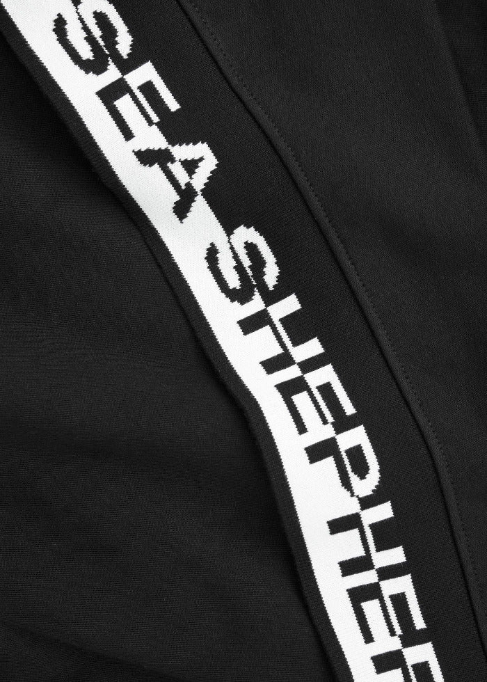 - Rückseite: Schriftzug Sea Shepherd, eingewebt ins Bündchen