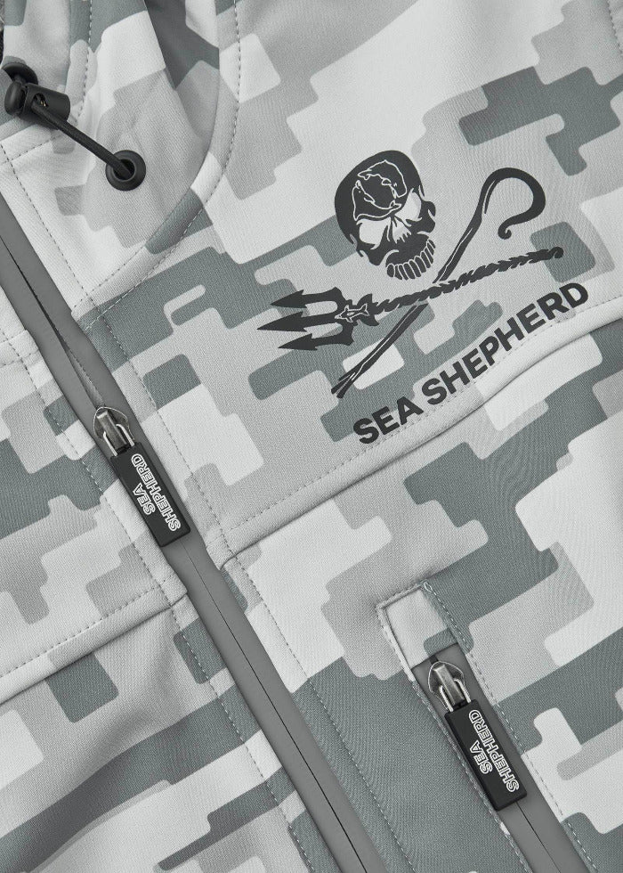Die Variante "Arctic White" ist im klassischen "Digital-Camouflage-Look“, in den Farben Weiß und Grau gehalten. Ein schwarzes Jolly-Roger-Logo auf der Vorderseite sowie ein schwarzer Sea-Shepherd-Schriftzug auf der Rückseite machen das Design komplett.